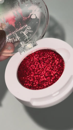 A fiery red chrome that flashes molten crimson with subtle depth, this shade ignites the lid with a high-impact, light-catching sparkle. Ultra-reflective and richly pigmented, it shifts beautifully as it moves perfect for dramatic looks, bold accents, or a statement eye.